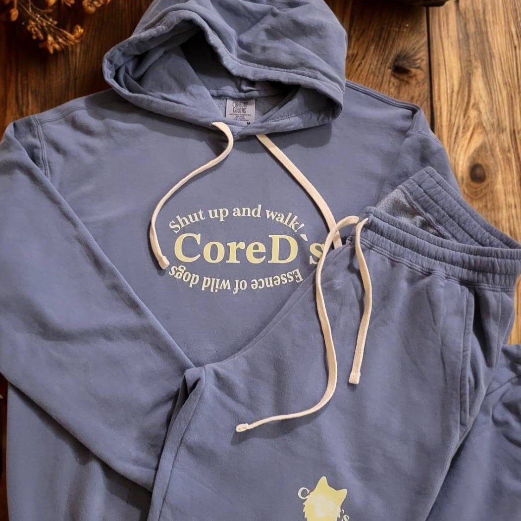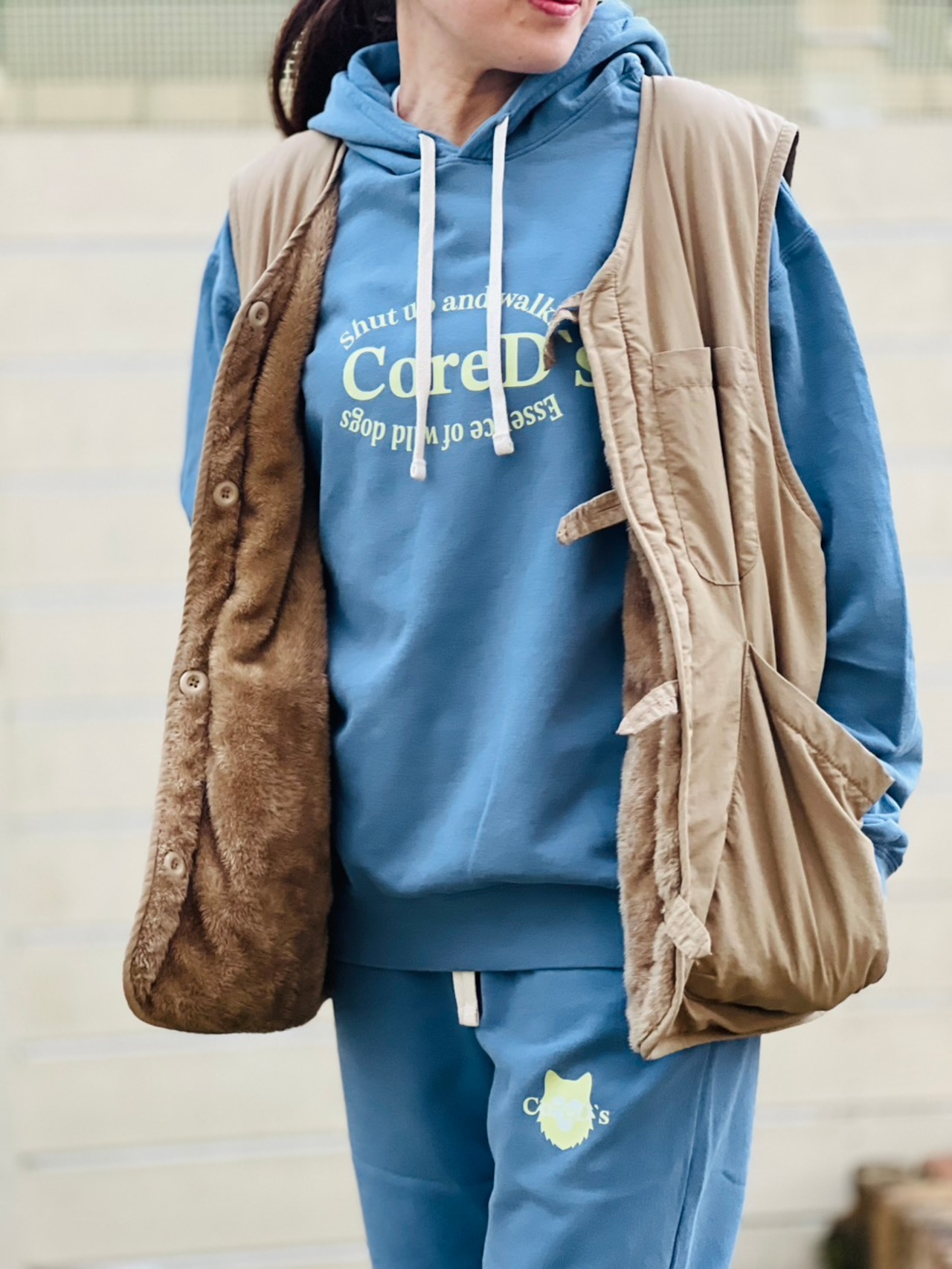 CoreD`sのロゴと「Shut up & Walk!」のデザインが入ったD`sらしさを楽しむことができるスウェットセットアップで日常に楽しみとやる気を!