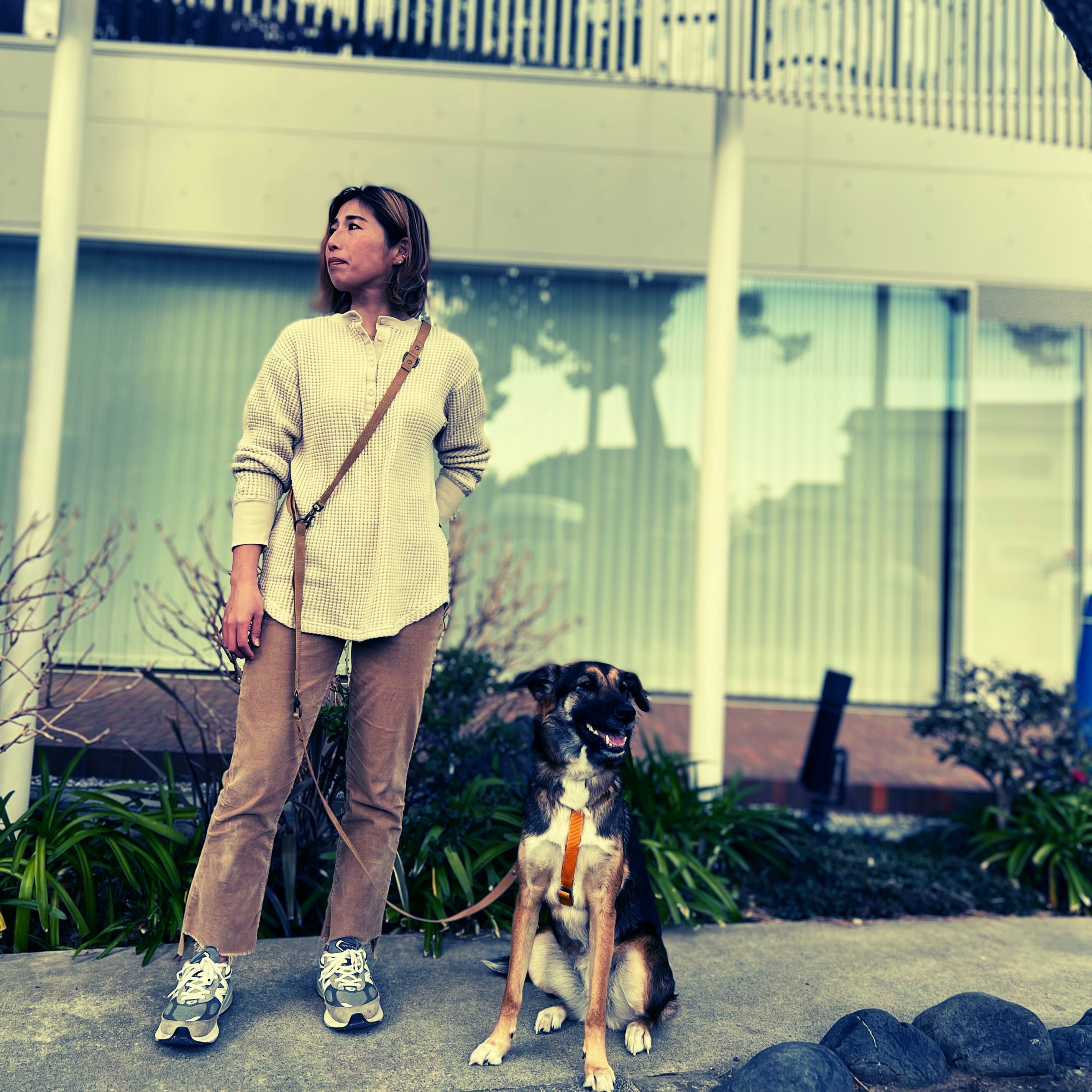 飼い主側はスリップショルダータイプになっており、肩にかけて使用することが出来、手がふさがることなく歩けるためとても快適です!